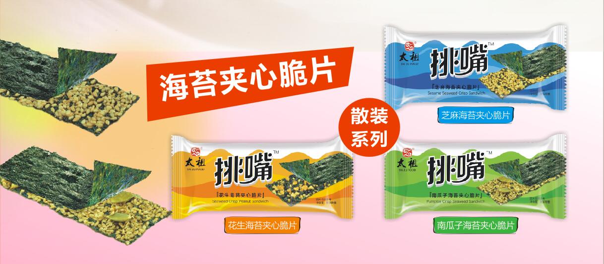 本次春季糖酒會,我們主推夏季商品:軟心綠豆糕和海苔夾心脆片。
